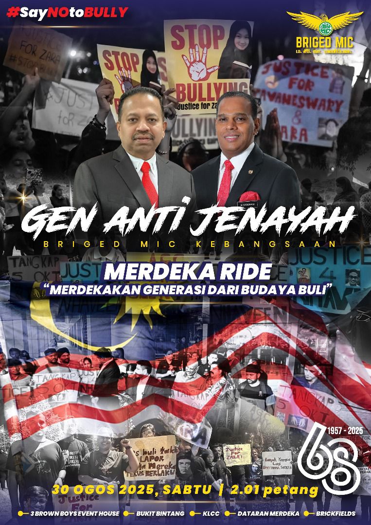 கோலாலம்பூர், ஆகஸ்ட் 28, 2025 – நாட்டின் 68-வது சுதந்திர தினத்தை முன்னிட்டு, பிரிகேட் MIC தேசியம் “தலைமுறையை பழிதீண்டல் கலாசாரத்திலிருந்து விடுவிப்போம்” என்ற கருப்பொருளில் சிறப்பு நிகழ்ச்சி ஒன்றை நடத்துகிறது. இந்நிகழ்ச்சி பழிதீண்டல் பிரச்சினையை சமுதாயத்தில் விழிப்புணர்வு ஏற்படுத்தும் நோக்குடன் நடத்தப்பட உள்ளது.
