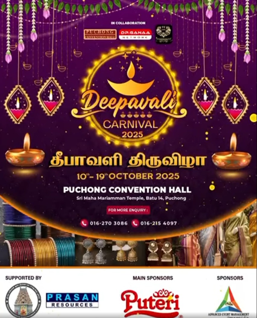 புசோங், மலேசியா –  தீபாவளி திருவிழா 2025 வரும் அக்டோபர் 10 முதல் 19 வரை புசோங் கான்வென்ஷன் ஹால், ஸ்ரீ மகா மாரியம்மன் கோவில், பத்து 14, புசோங் வளாகத்தில் நடைபெற உள்ளது.