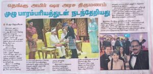 திருமண விழா முடிந்ததும் விருந்தினர்களுக்காக சிறப்பு விருந்தும், இசை நிகழ்ச்சியும், கலாசார நிகழ்வுகளும் நடைபெற்றன.