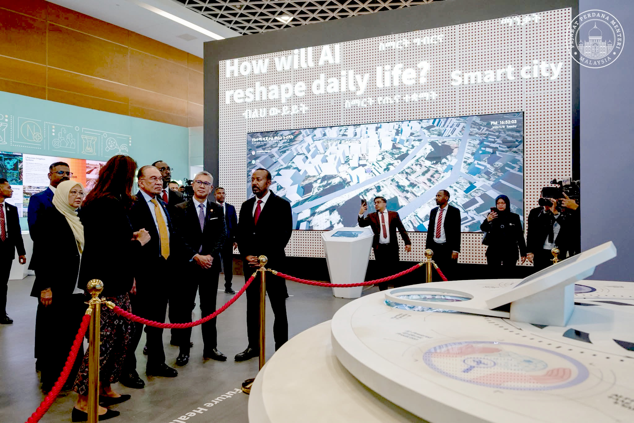 எத்தியோப்பியா நாட்டில் அடியெடுத்து வைத்தவுடன், அந்நாட்டு பிரதமர் டாக்டர் அபி அஹ்மத் அலி அவர்கள், மலேசிய பிரதிநிதி குழுவை நேரடியாக வழிநடத்தி எத்தியோப்பியா அறிவியல் அருங்காட்சியகம் நோக்கி அழைத்துச் சென்றார். அங்கு, அந்நாட்டு அரசாங்கத்தின் தலைமையில் வேகமாக வளர்ந்து வரும் தொழில்நுட்ப மற்றும் செயற்கை நுண்ணறிவு (AI) துறையின் முன்னேற்ற வரலாறு விரிவாகக் காட்சிப்படுத்தப்பட்டிருந்தது.