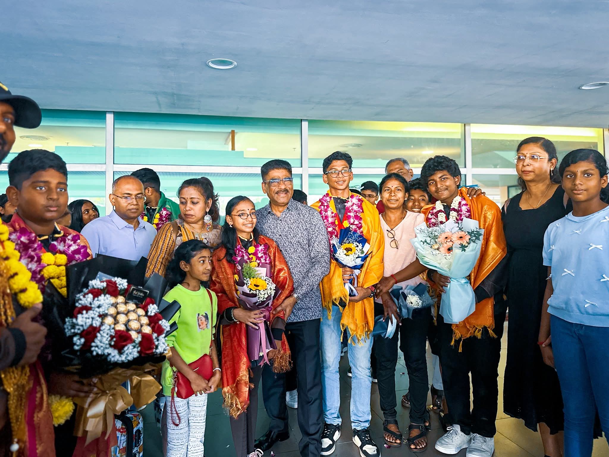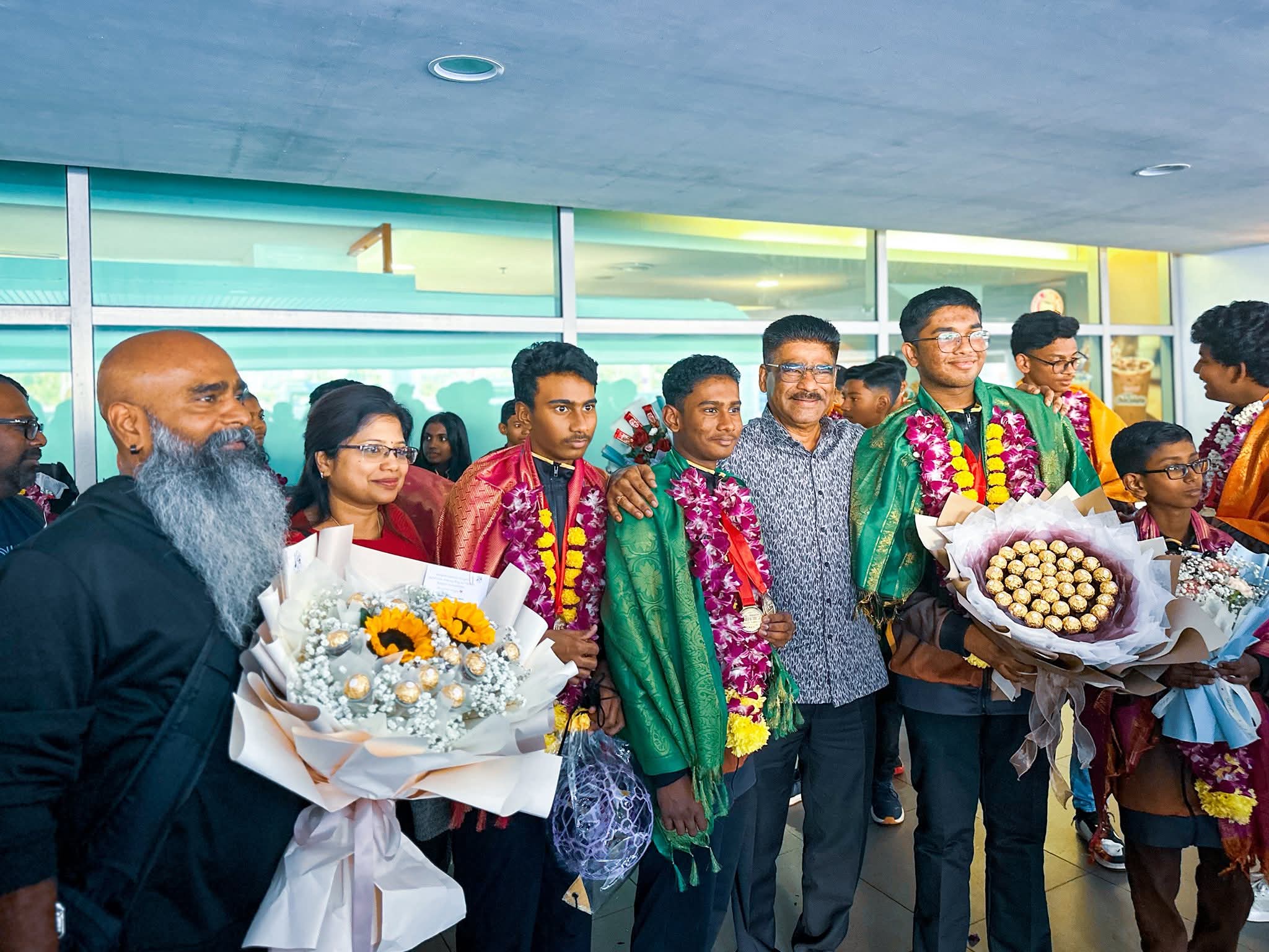 நேற்று, மாணவர்களை வரவேற்க பின்னாங்கு சர்வதேச விமான நிலையத்தில் சிறப்பு வரவேற்பு நிகழ்ச்சி நடைபெற்றது. அங்கு கலந்து கொண்ட பினாங்கு மாநில தமிழ் பள்ளிகள் சிறப்பு குழு தலைவர் டத்தோ’ சுந்தரராஜூ சோமு, மாணவர்களின் வெற்றியை “வரலாற்றுச் சாதனை” என பாராட்டினார்.