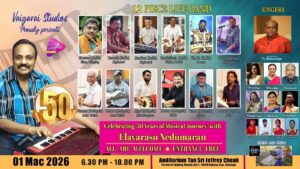 இந்த 50 ஆண்டுகால இசைப் பயணத்தை கொண்டாடும் விழா, மார்ச் 1, 2026 (ஞாயிற்றுக்கிழமை) மாலை 6.30 மணி முதல் இரவு 10.30 மணி வரை Auditorium Tan Sri Jeffrey Cheah அரங்கில் நடைபெறவுள்ளது. அனைவருக்கும் இலவச அனுமதி வழங்கப்பட்டுள்ளதால், குடும்பத்துடன் கலந்து கொள்ள பொதுமக்கள் அன்புடன் அழைக்கப்படுகிறார்கள்.