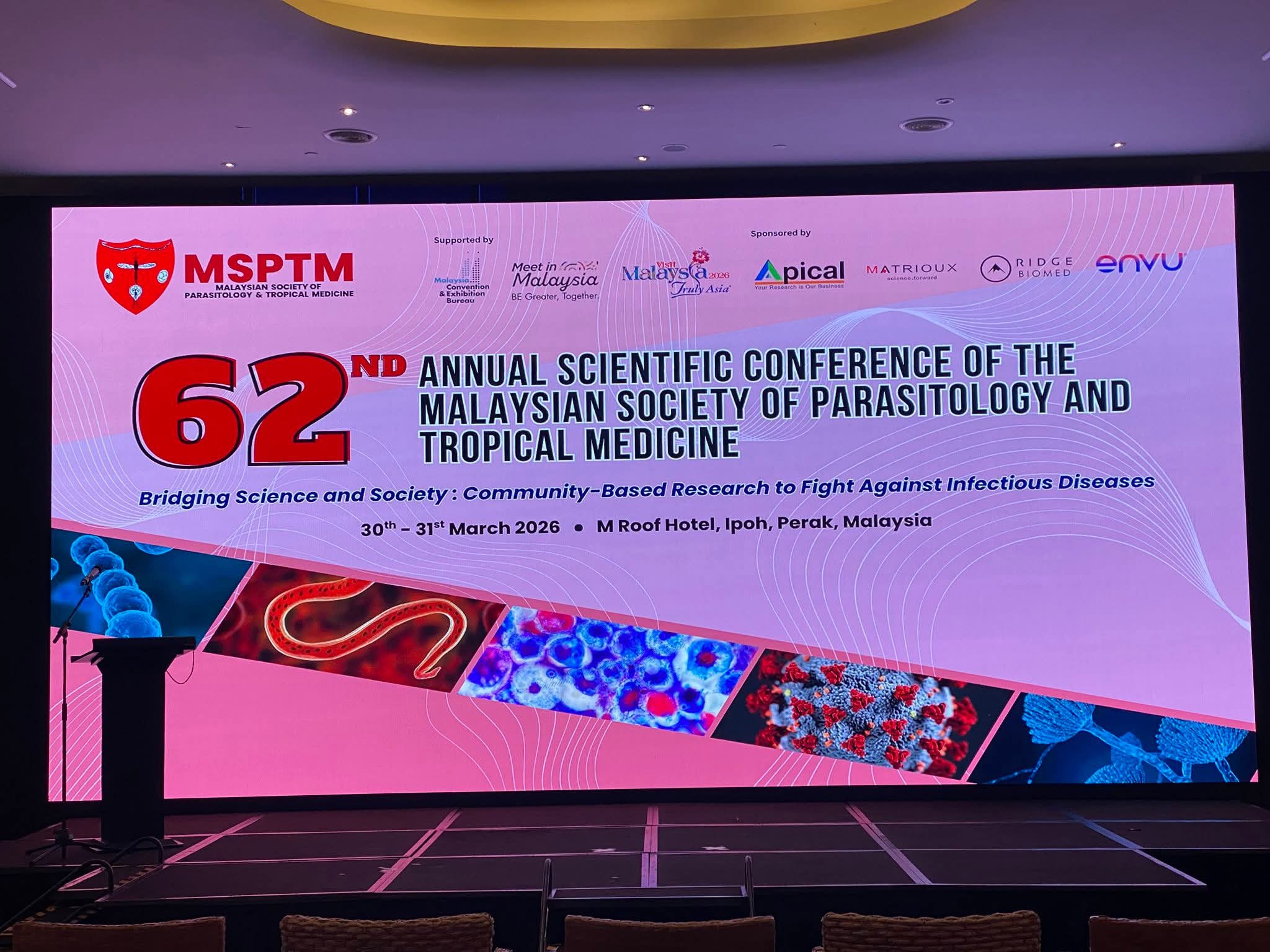 மலேசிய பராசிடாலஜி மற்றும் வெப்பமண்டல மருத்துவ சங்கத்தின் (MSPTM) 62வது ஆண்டு அறிவியல் மாநாடு (MSPTM 2026) இரு நாட்கள் நடைபெற்ற நிகழ்ச்சிகளுடன் வெற்றிகரமாக நிறைவடைந்தது. இம்மாநாடு மார்ச் 30 மற்றும் 31 தேதிகளில் பேராக் மாநிலத்தின் இபோ நகரில் நடைபெற்றது.
